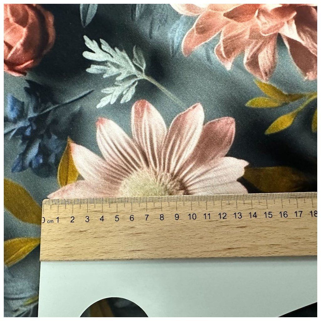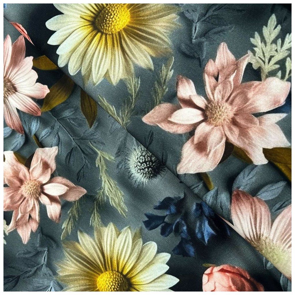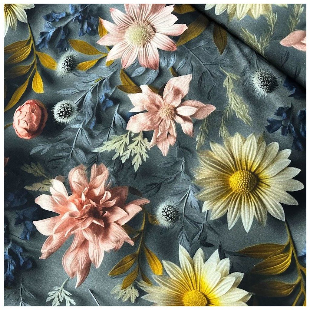 Digital jerseyanyag - Virágos kert szürke