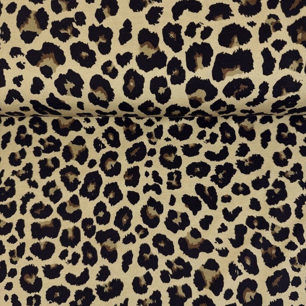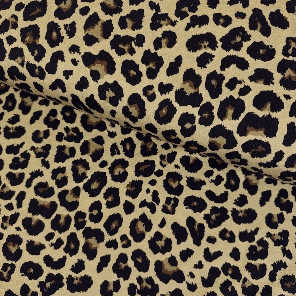 Jerseyanyag Digital - Leopárd a khaki színben