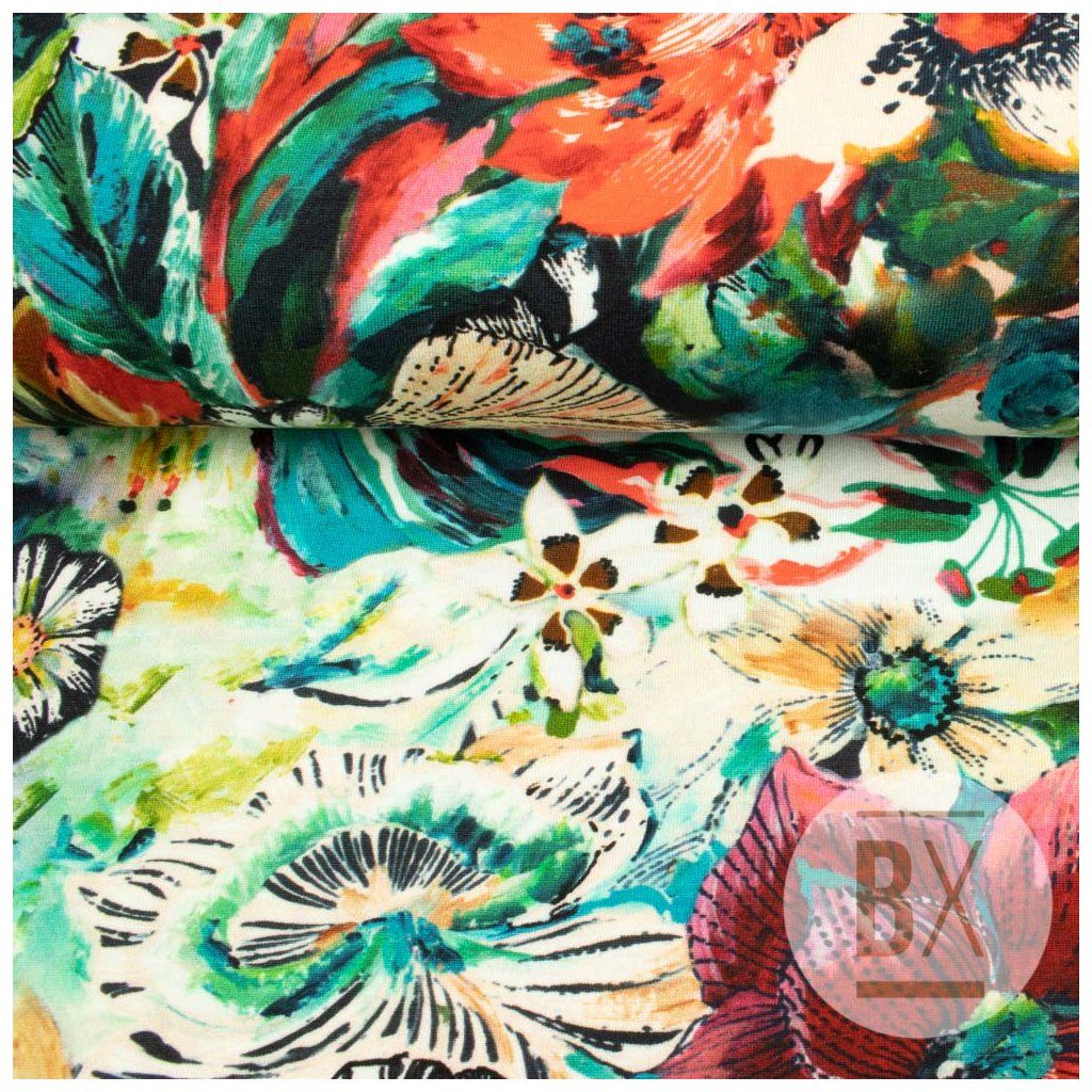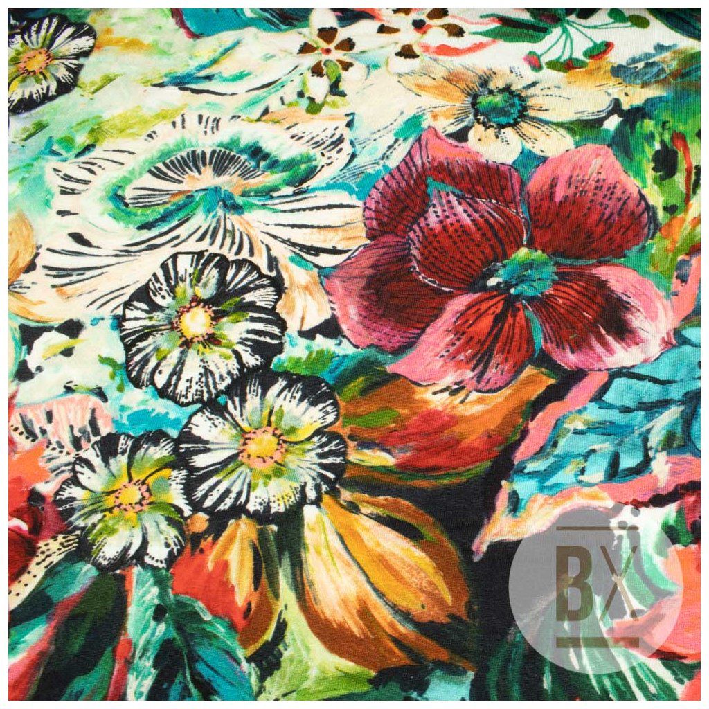 Minőségi viszkóz kötött anyag európai gyártótól, különböző mintákban. A 200 g/m2 súlyú, 95% viszkóz és 5% elasztán összetételű anyag ideális nyári ruhák, szoknyák, pólók, topok, leggings, nadrágok, valamint nyakmelegítők, fejpántok és sapkák készítéséhez.Kiegészítő paraméterek