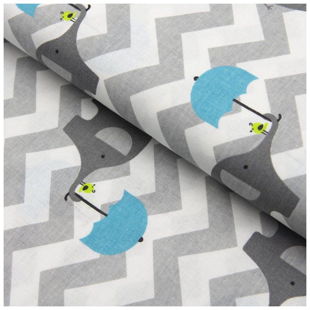 Mintás pamut - Elefántok - Kék