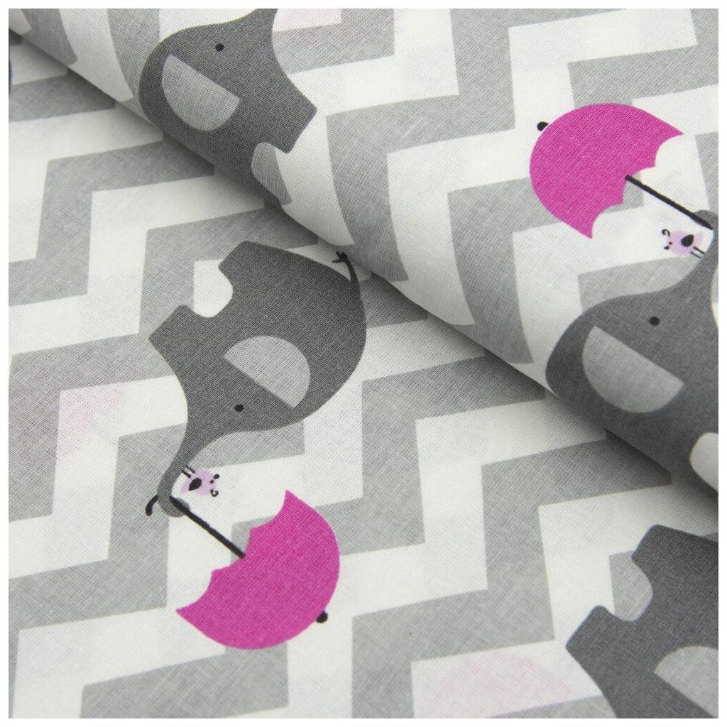Mintás pamut - Elefántok - Rózsaszín