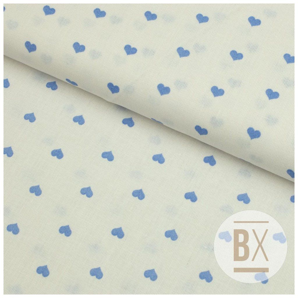 Mintás pamut - Szívecskék - Világoskék fehér alapon