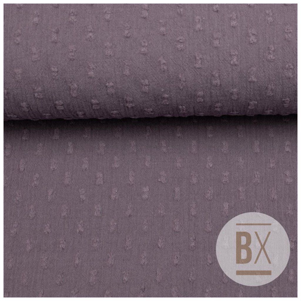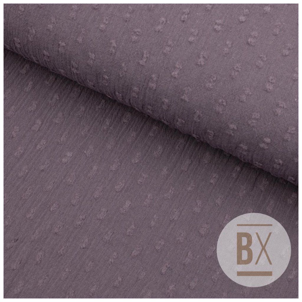 AYA Dobby muszlin európai gyártótól, különböző színekben, 90 g/m2 súlyú. A 100% pamutból készült anyag félig átlátszó, szőtt buborékokkal, könnyű, nagyon légies és kellemes tapintású.A muszlin anyagot könnyű nyári ruhák, kaftánok, gyermekruházat és kiegészítők, takarók, plédek és hasonló termékek varrásához ajánljuk.
