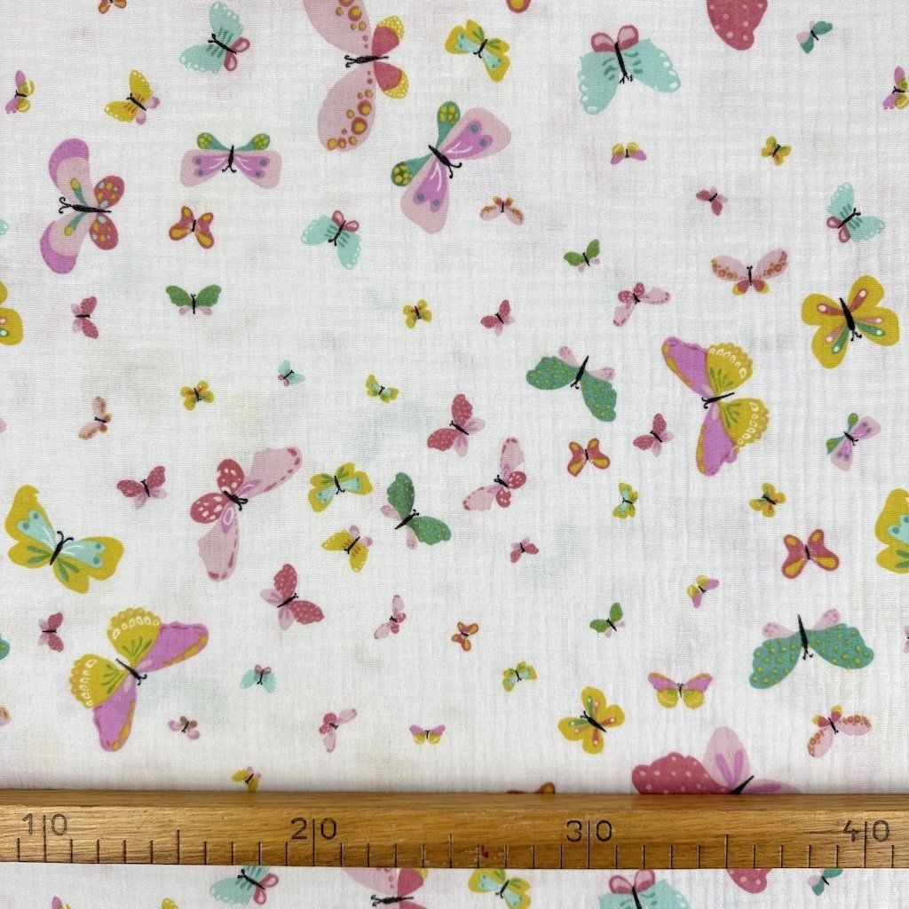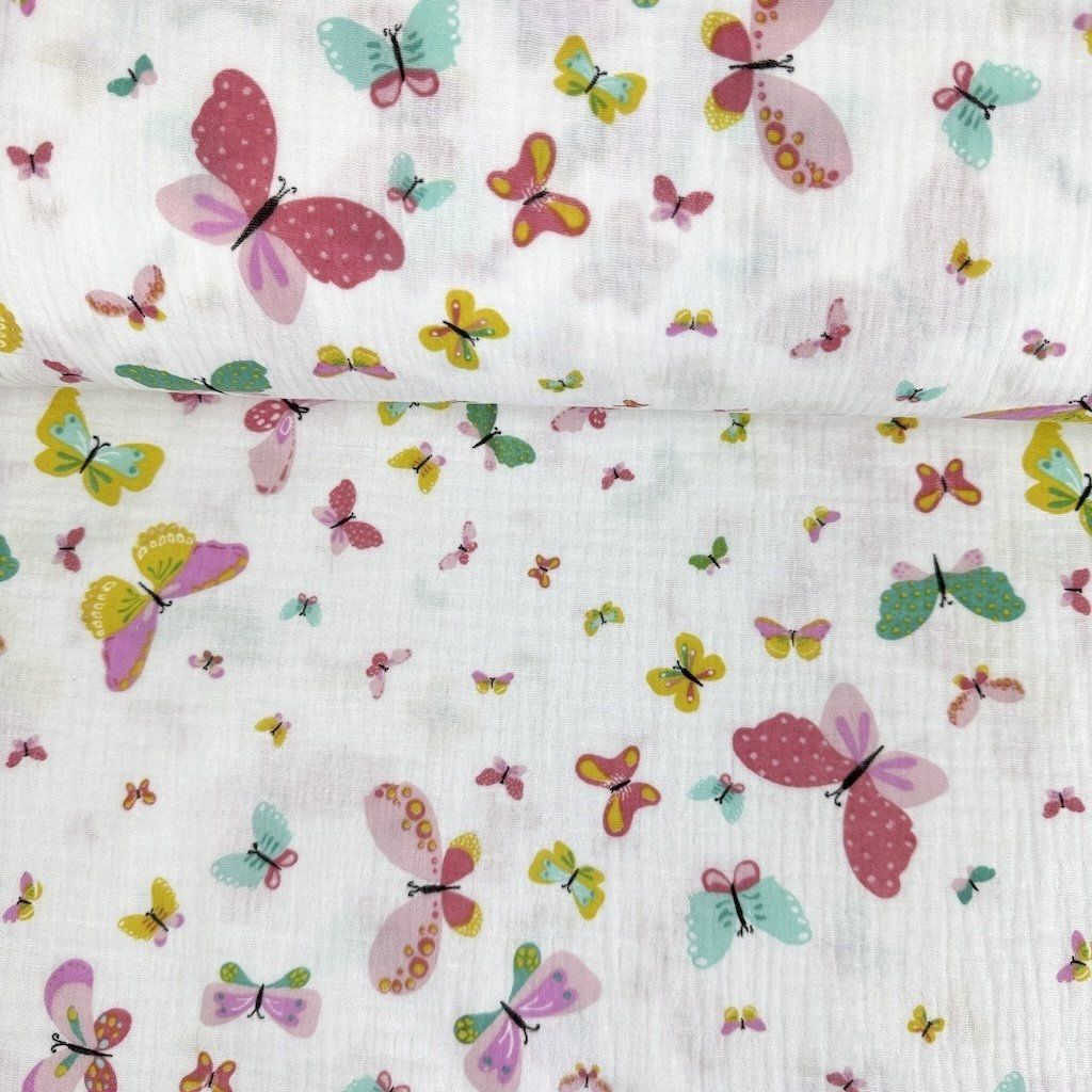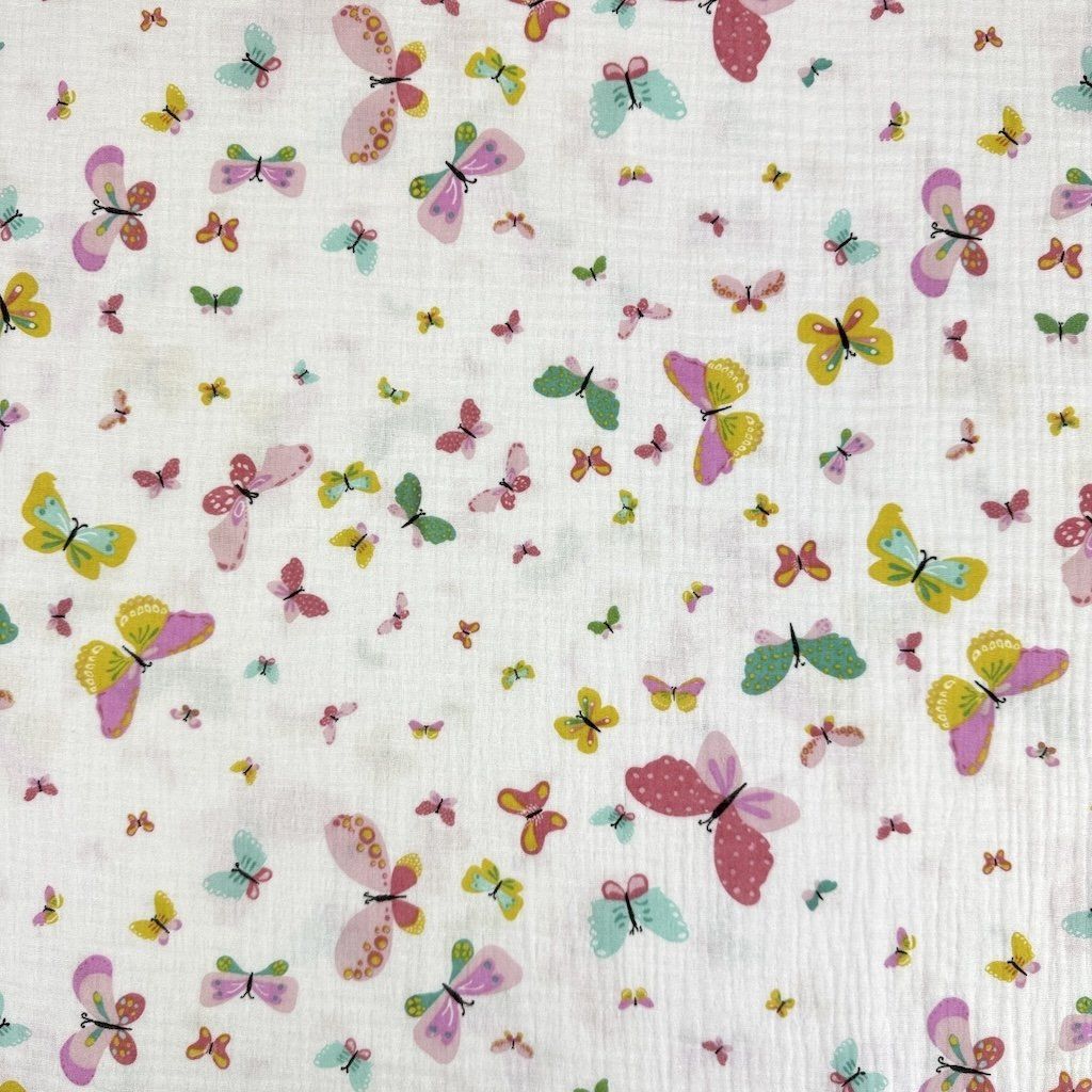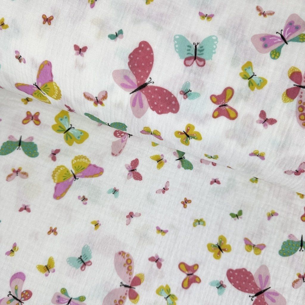 lélegzik A mintás muszlin / gézanyag vagy fačovina finom, légies és rendkívül kellemes anyag, amely 100% pamutból készül. Jellegzetes krepp (ráncos) szerkezetének köszönhetően természetesen rugalmas, puha tapintású és nem igényel vasalást. A dupla gézanyag biztosítja az anyag szilárdságát, miközben megőrzi könnyedségét és légáteresztő képességét. Az elegáns minták eredeti megjelenést kölcsönöznek az anyagnak, amely gyermek- és női ruhák, valamint lakberendezési kiegészítők varrásakor is jól mutat. A muszlin különösen népszerű nyári ruhák, blúzok, szoknyák, ingek, gyermek bodyk, pólyák, takarók vagy sálak varrásához.
