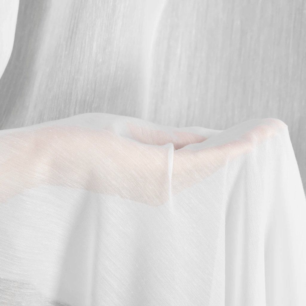 A finom, matt batiszt hófehér árnyalatban kiválóan illeszkedik különböző belsőépítészeti koncepciókhoz. A félig átlátszó anyagszerkezet lehetővé teszi, hogy a szövet finoman eltakarja az ablakot, ezért különösen napos helyiségekbe ajánljuk. Légies és könnyű anyag, univerzális jelleggel, ideális vitrázsfüggönyökhöz, amelyek minden belső térbe és különböző stílusokhoz illeszkednek; a romantikus, idilli, klasszikus és skandináv stílustól az öko trendekig. Gyönyörűen néz ki, és természetességet, valamint visszafogott, diszkrét eleganciát kölcsönöz. Függetlenül attól, hogy függönyöket vagy redőnyöket választ hozzá, vagy úgy dönt, hogy önmagában mutatja be, mindig elegáns, friss és nemes hatást kelt. A vitrázsfüggönyök szélébe varrt terhelővarrás gyönyörű megjelenést kölcsönöz a függönynek, amikor a függönyrudra van akasztva, és nincs szükség további szegélyezésre.