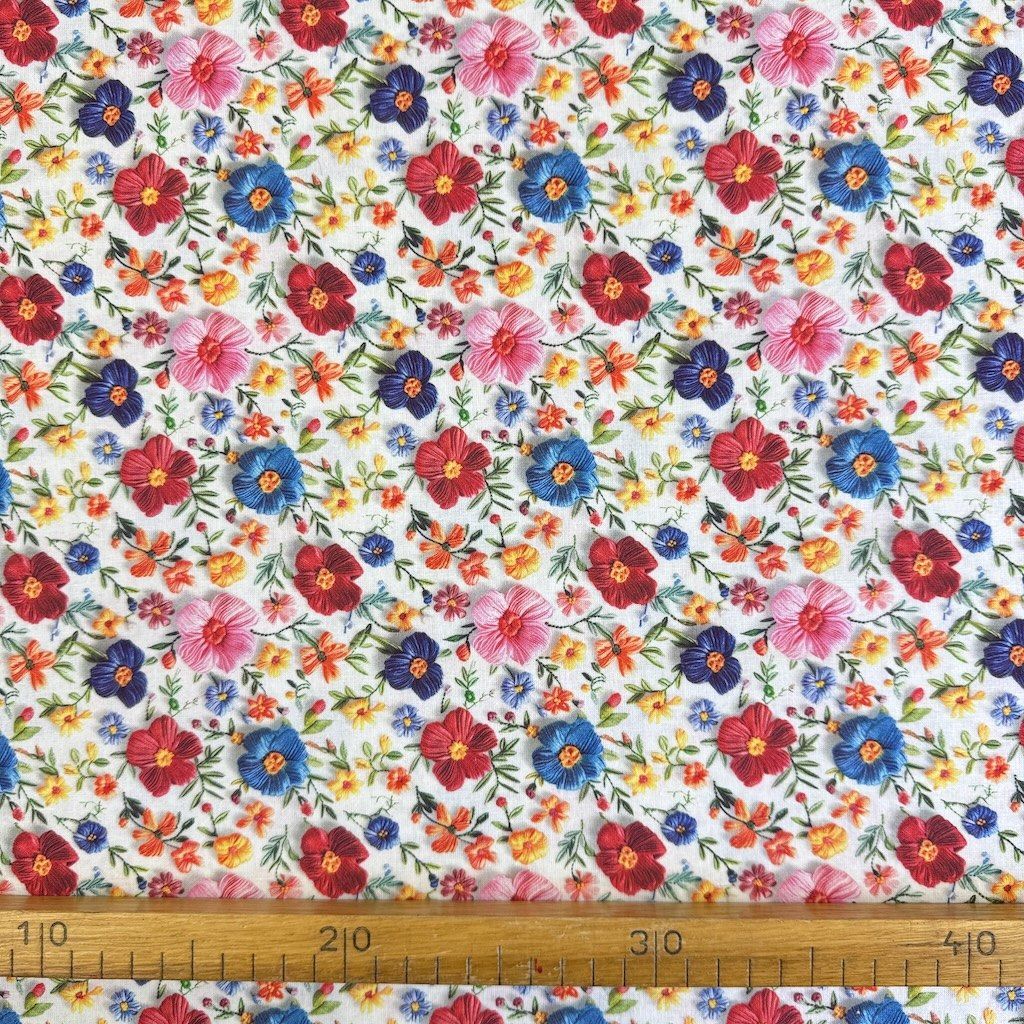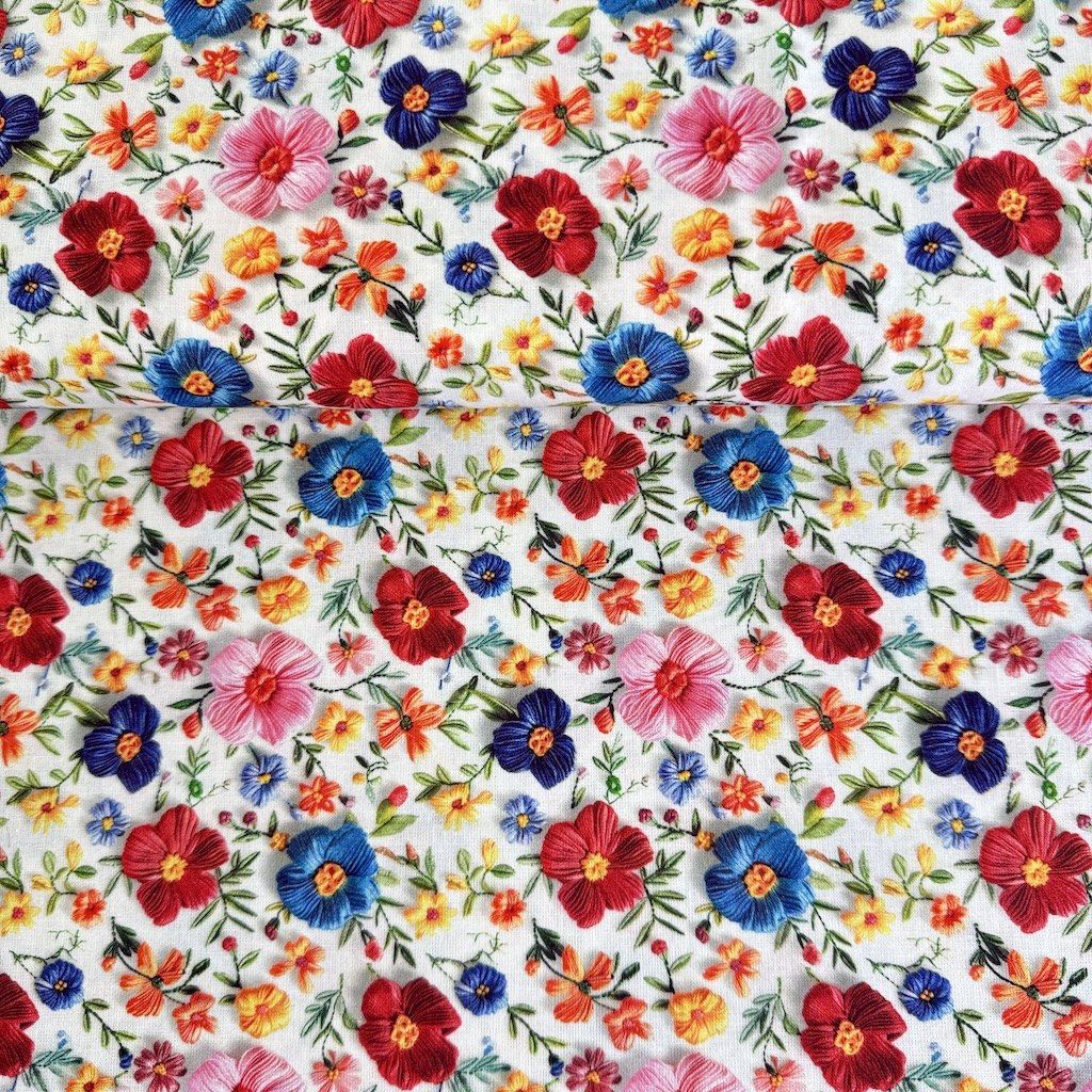 Pamut Digital 3D - Hímzett színes virágok