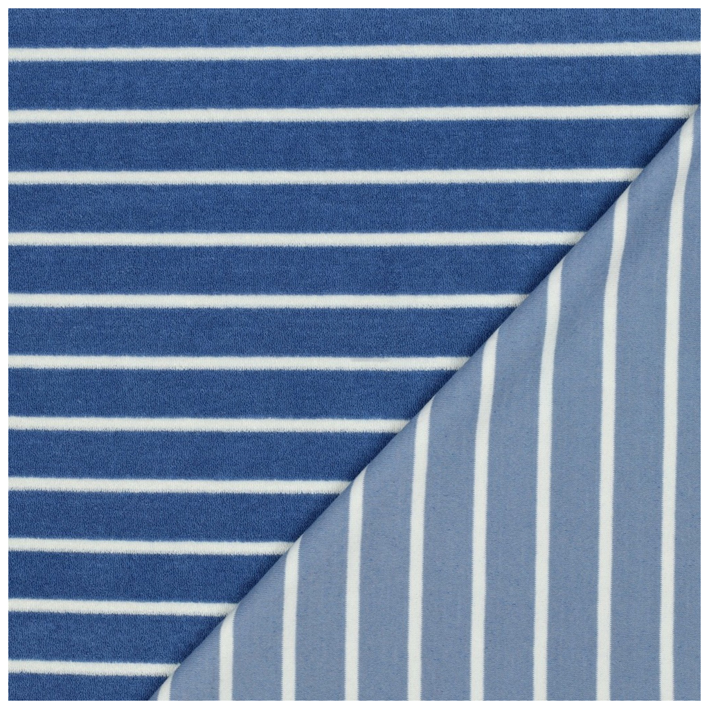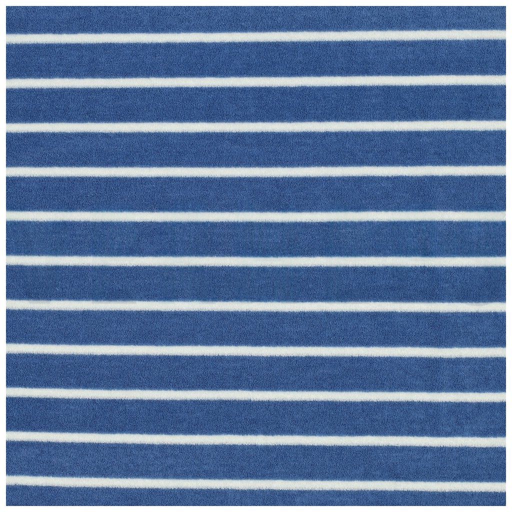 Kiváló minőségű, enyhén rugalmas frottír anyag szőtt csíkokkal (yarn dyed stripes), megbízható európai gyártótól, amely ötvözi a kényelmet, a funkcionalitást és a modern megjelenést. A festett fonalak használatának köszönhetően a csíkos minta ismételt mosás után is megőrzi színét, így hosszú élettartamot biztosít a kész termékek számára. A frottír jellegzetes hurkolt szerkezete magas nedvszívó képességet és kellemes puhaságot biztosít. Ez az anyag ideális választás olyan termékekhez, amelyek nedvességgel és bőrrel érintkeznek – a fürdőszobai textíliáktól a kényelmes otthoni ruházatig.
