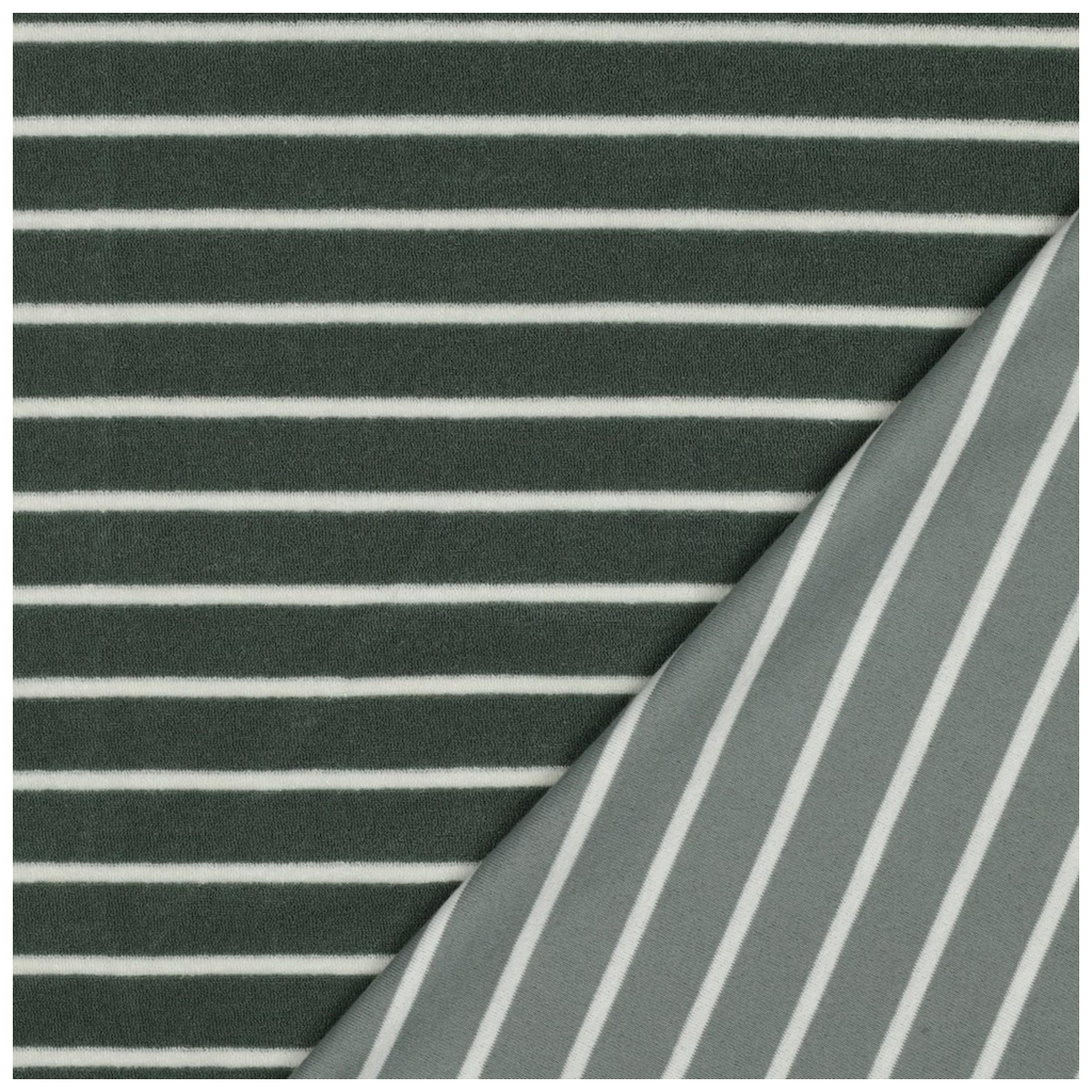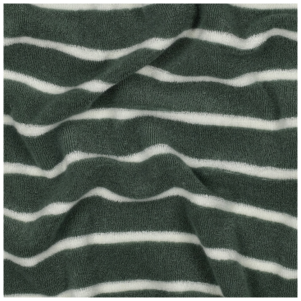Kiváló minőségű, enyhén rugalmas frottír anyag szőtt csíkokkal (yarn dyed stripes), megbízható európai gyártótól, amely ötvözi a kényelmet, a funkcionalitást és a modern megjelenést. A festett fonalak használatának köszönhetően a csíkos minta ismételt mosás után is megőrzi színét, így hosszú élettartamot biztosít a kész termékek számára. A frottír jellegzetes hurkolt szerkezete magas nedvszívó képességet és kellemes puhaságot biztosít. Ez az anyag ideális választás olyan termékekhez, amelyek nedvességgel és bőrrel érintkeznek – a fürdőszobai textíliáktól a kényelmes otthoni ruházatig.