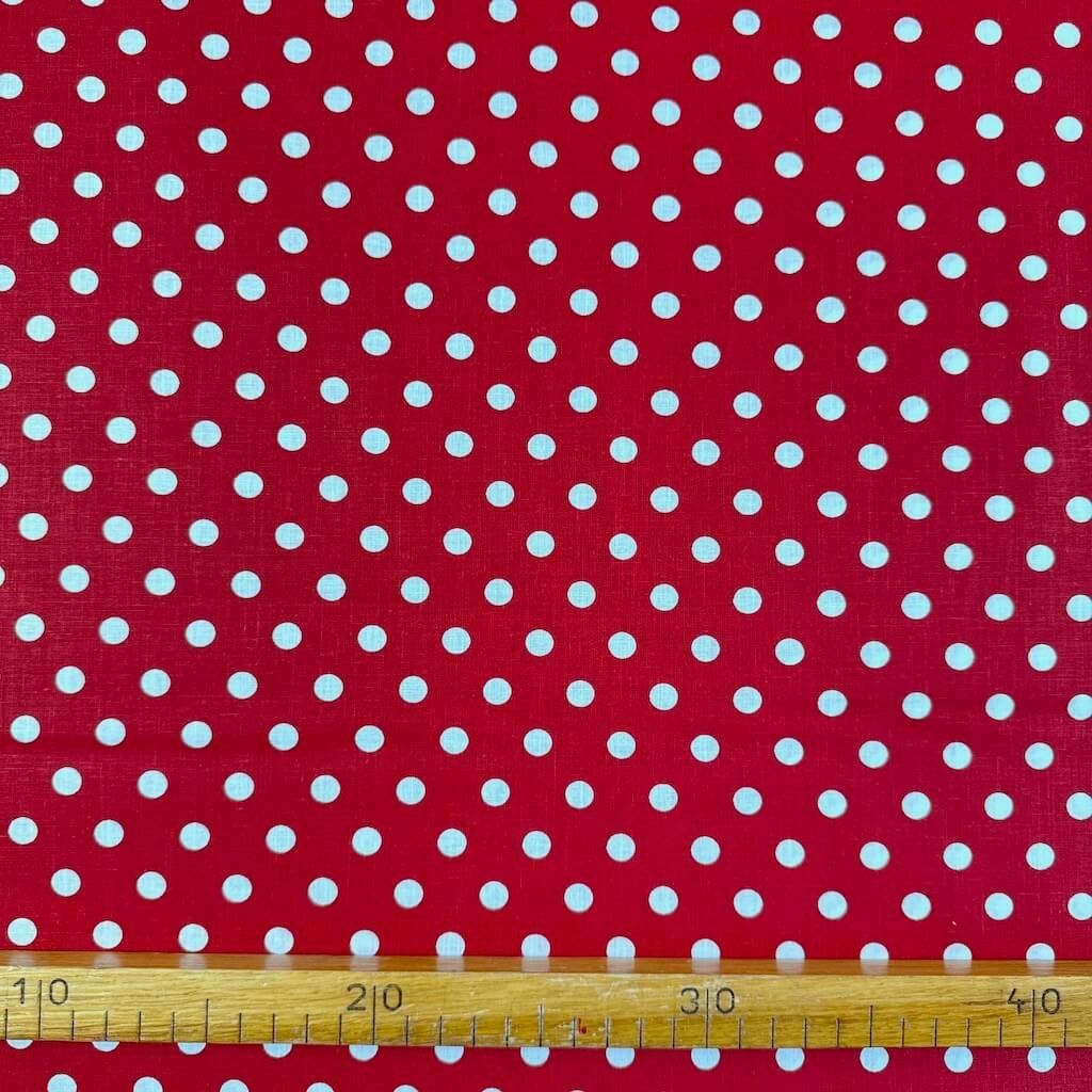 Pamut mintás - Fehér pöttyök (1 cm) sötétvörösön