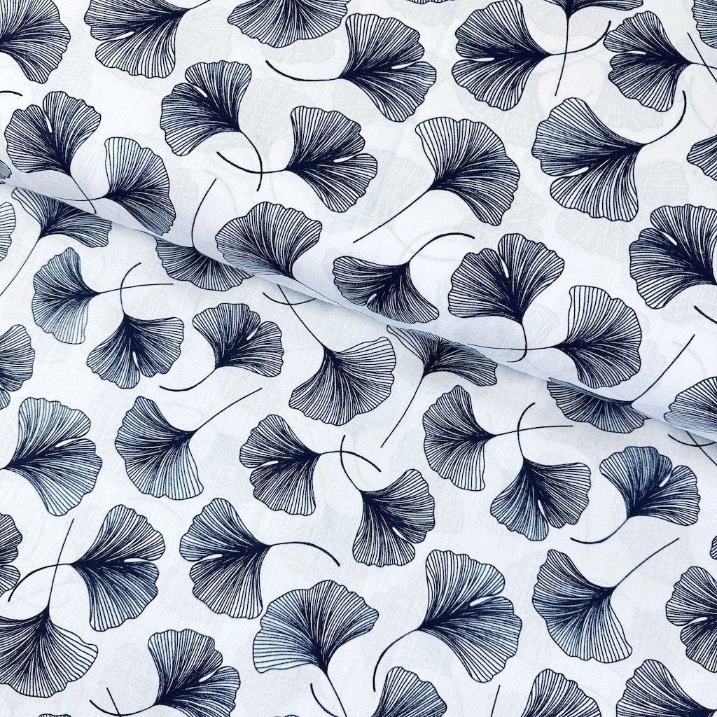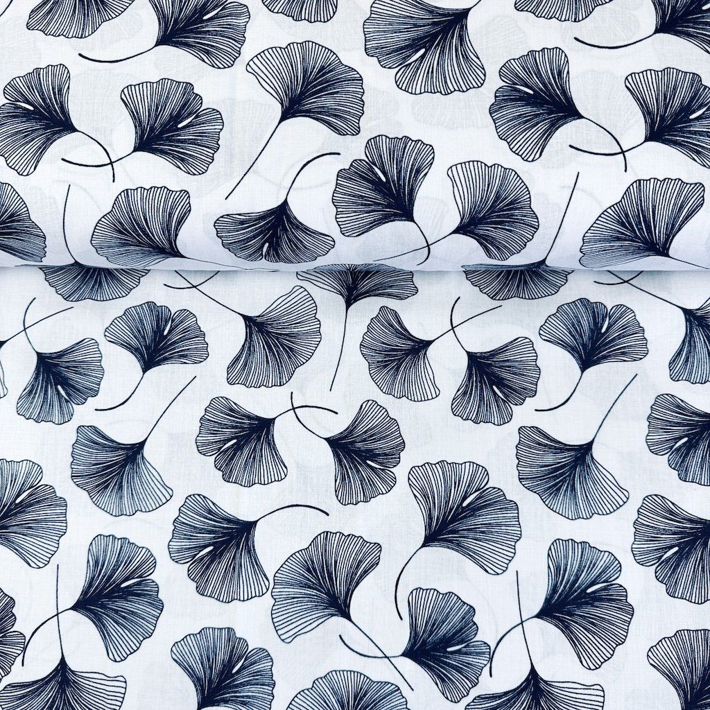 Pamut mintás - Sötétkék ginkgo fehéren