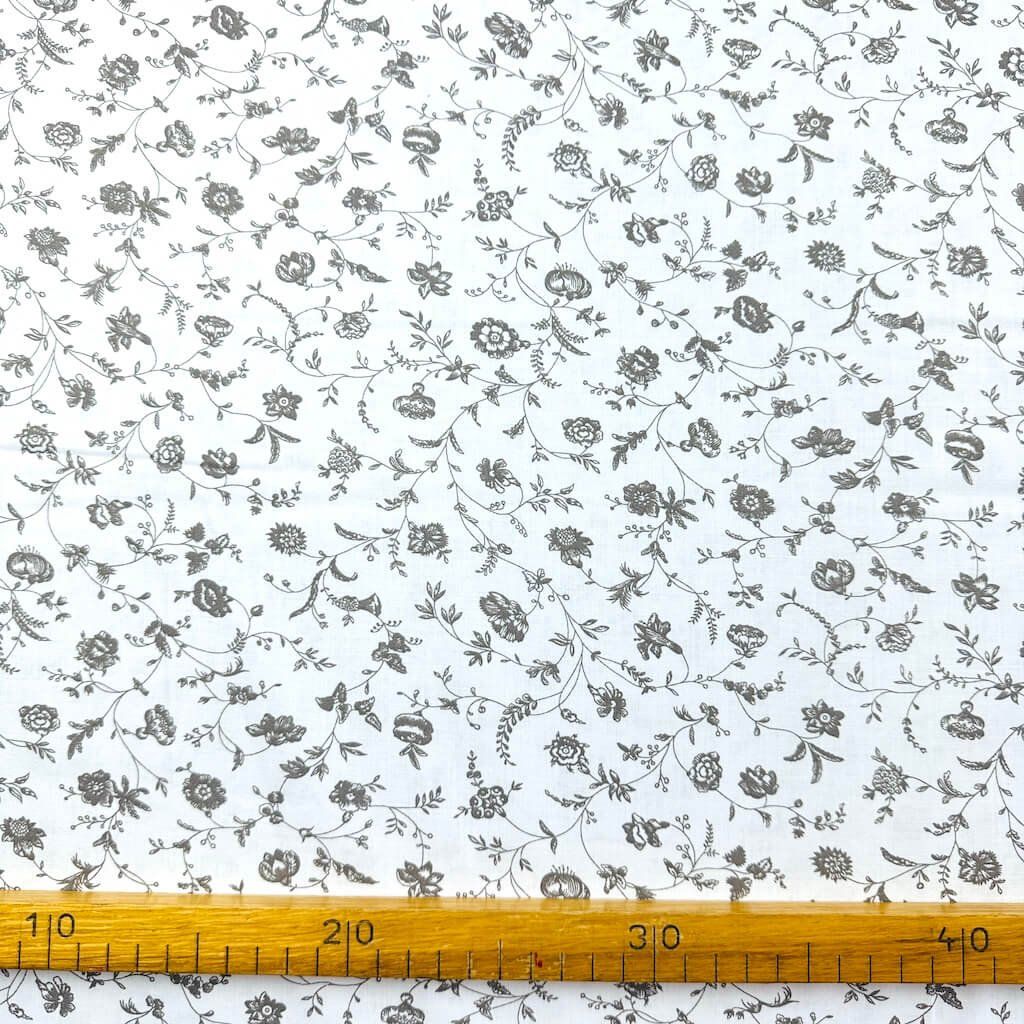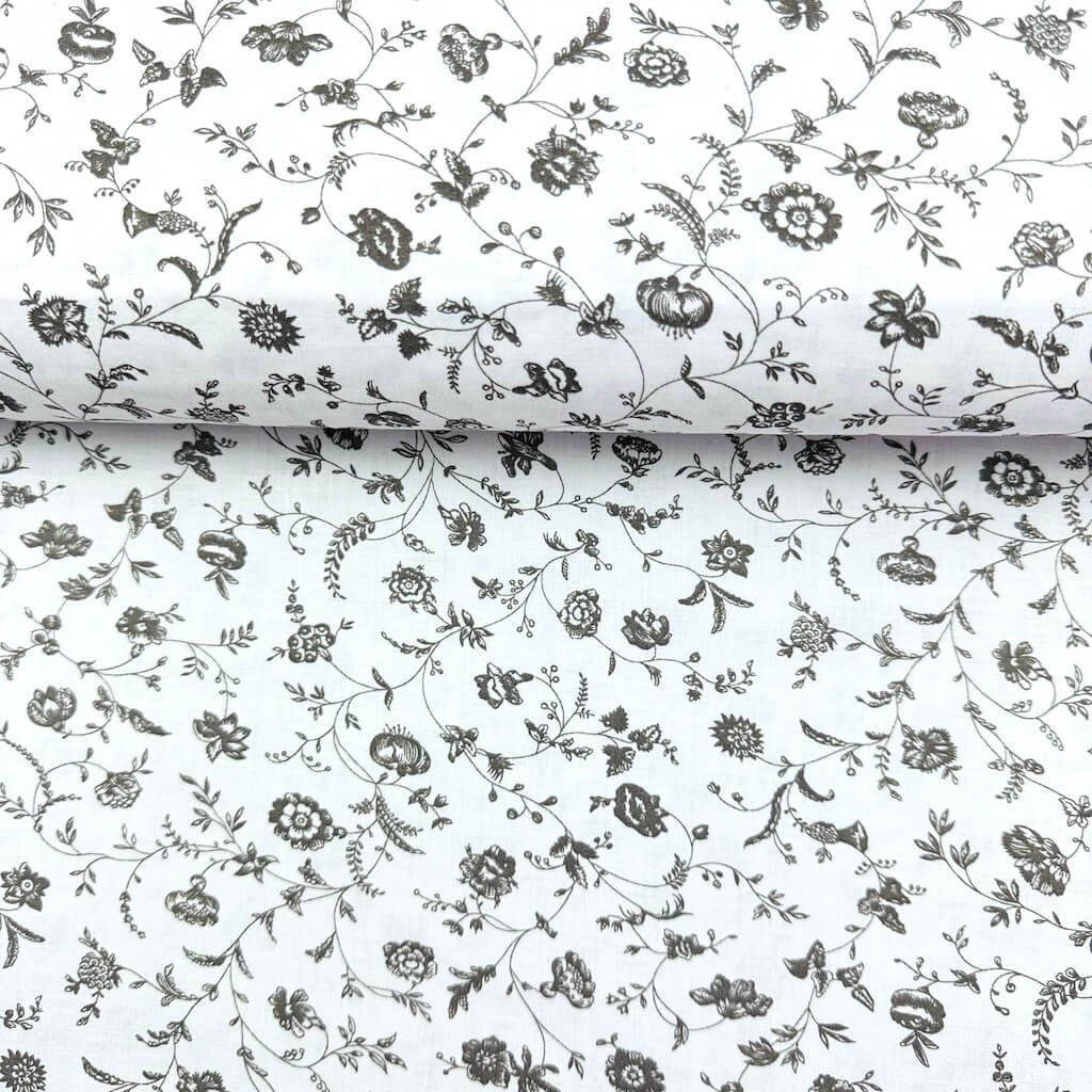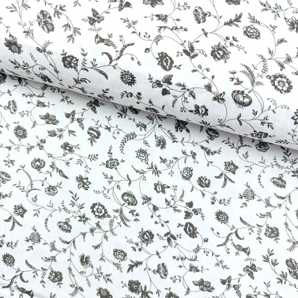 Pamut mintás - Szürke virágok fehéren