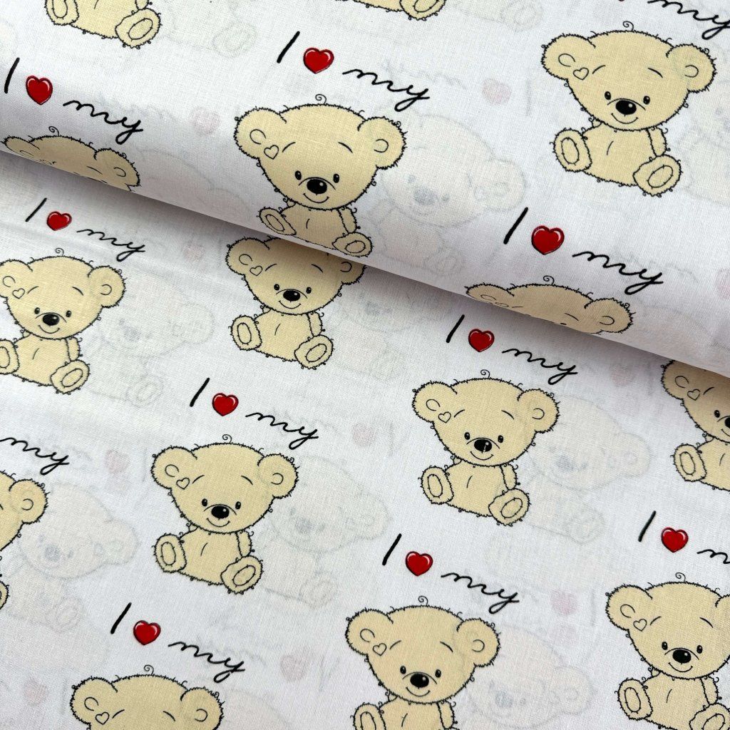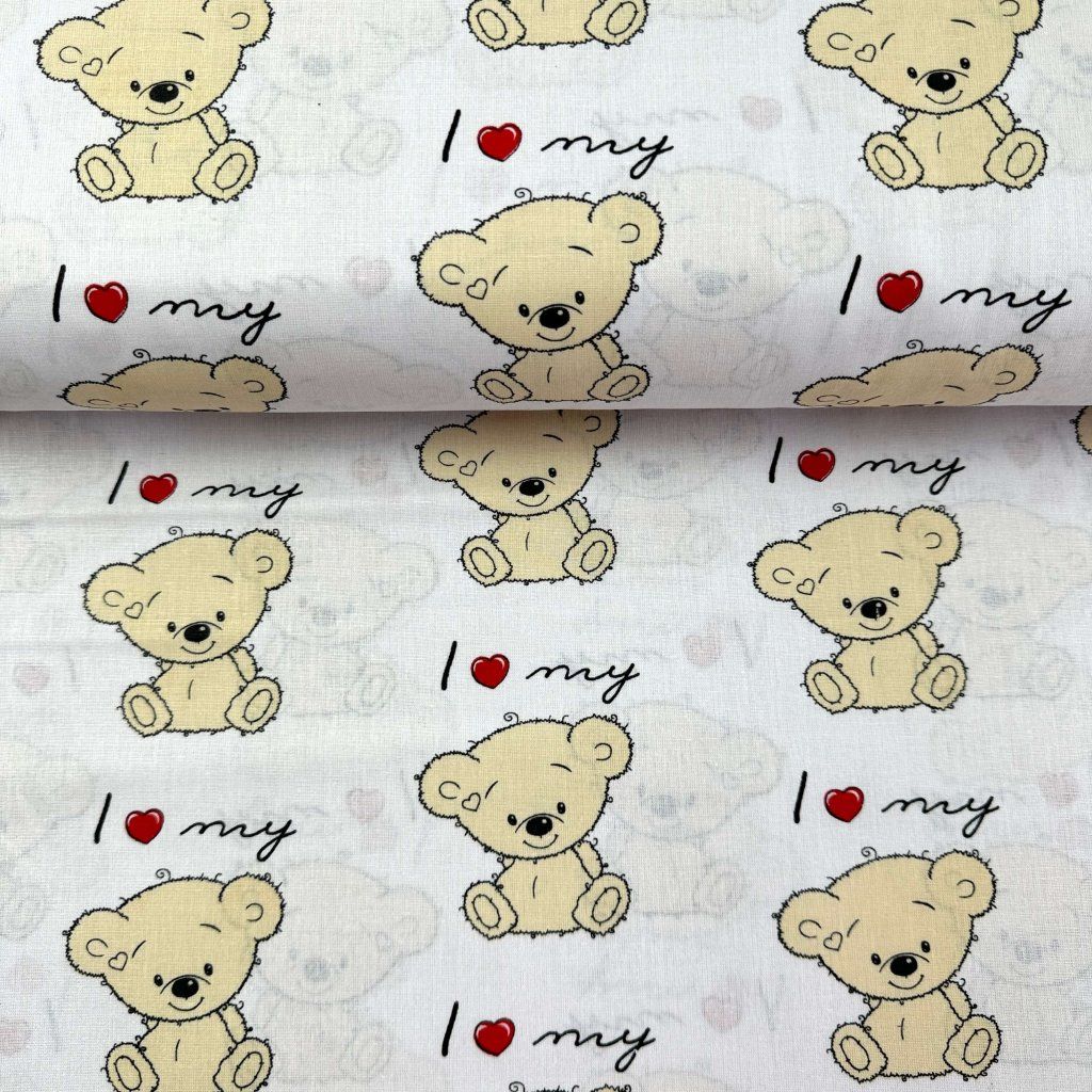Pamut mintás - Teddy mackók fehéren
