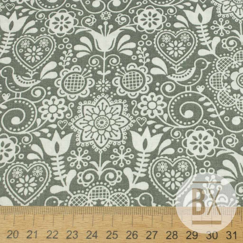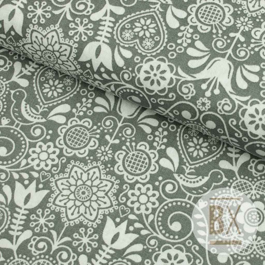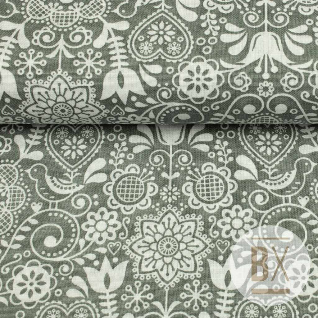 Pamut népi minta - szürke népi madár