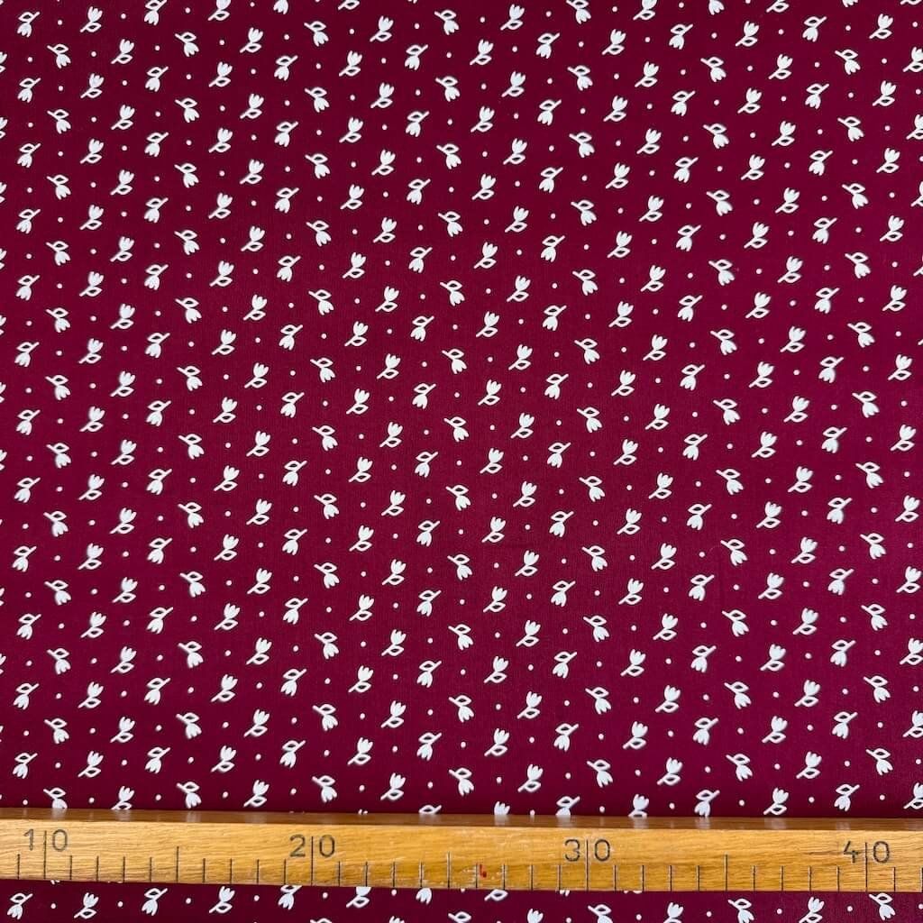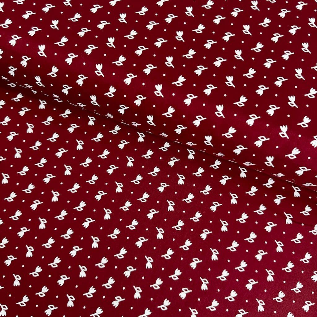 Pamut népi minta - Tulipán fehér bordóra