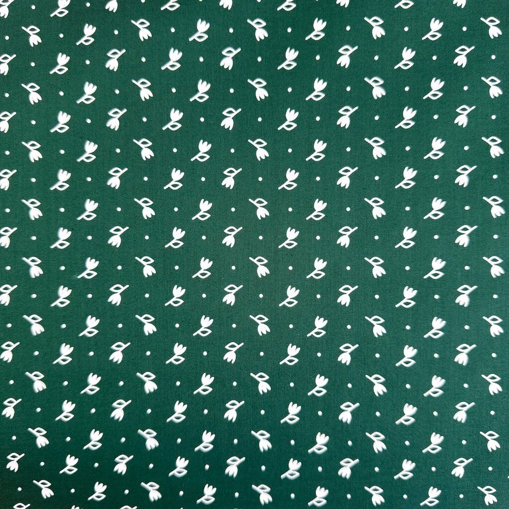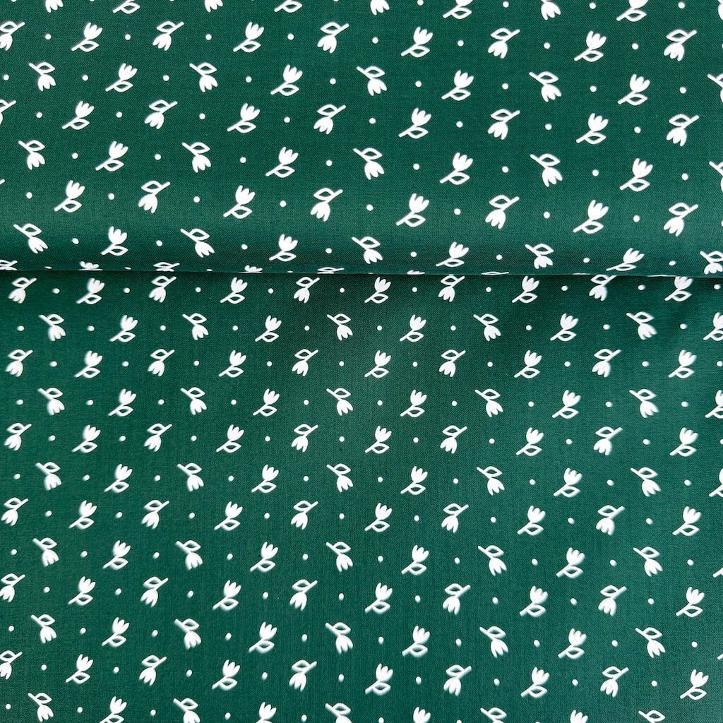 Pamut népi minta - Tulipán fehér sötétzöldön