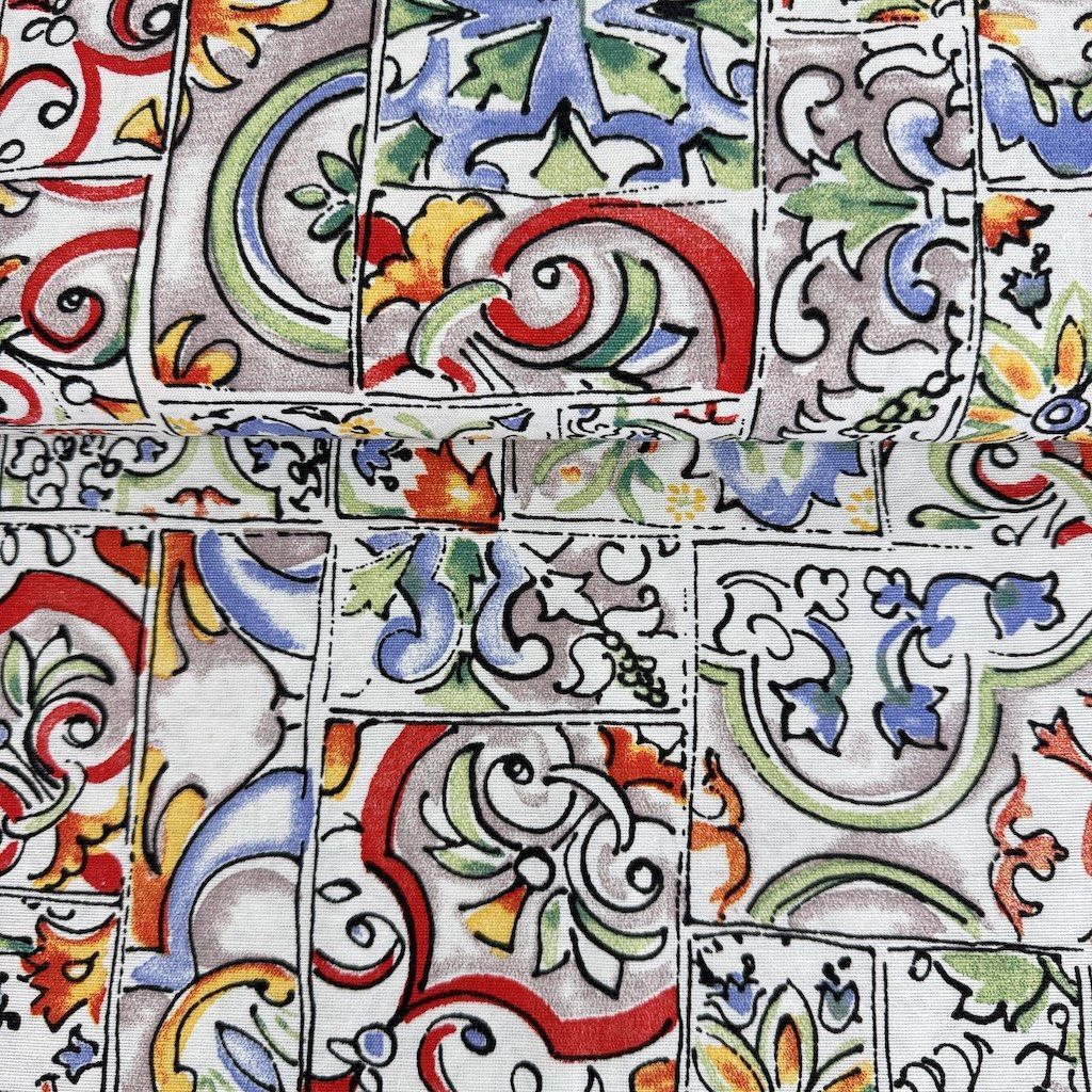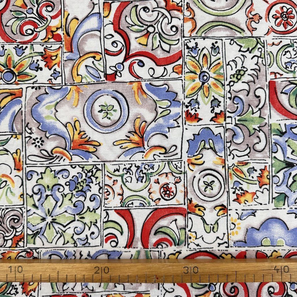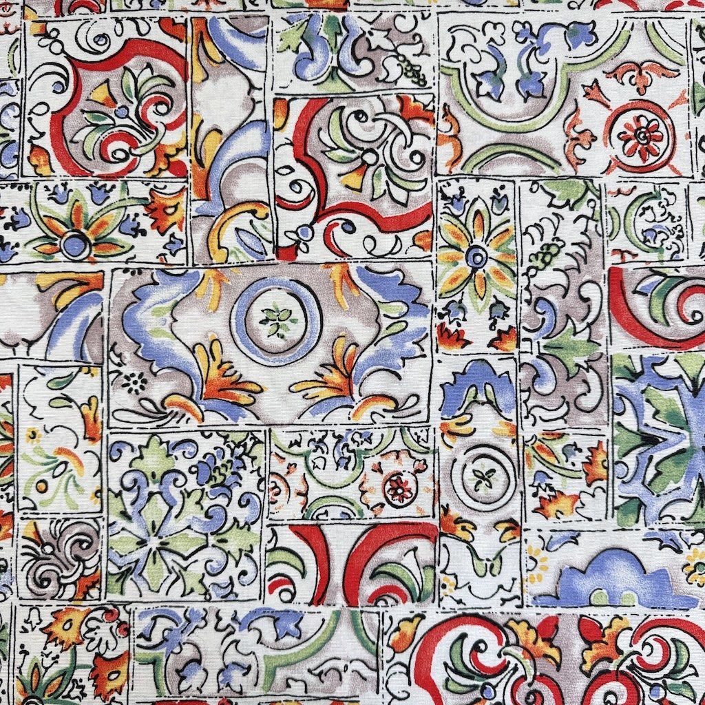 Dekoratív, minőségi spanyol anyag, amely 70% pamutból és 30% poliészterből áll, súlya 180 g/m2. A spanyol méteráru anyagot asztalterítők, párnák, terítők, táskák, függönyök és lakberendezési kiegészítők varrásához ajánljuk.