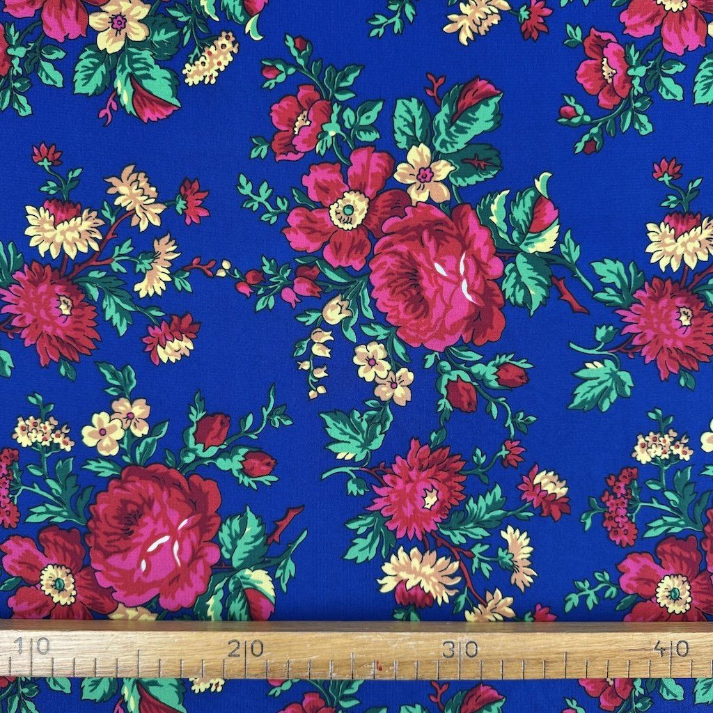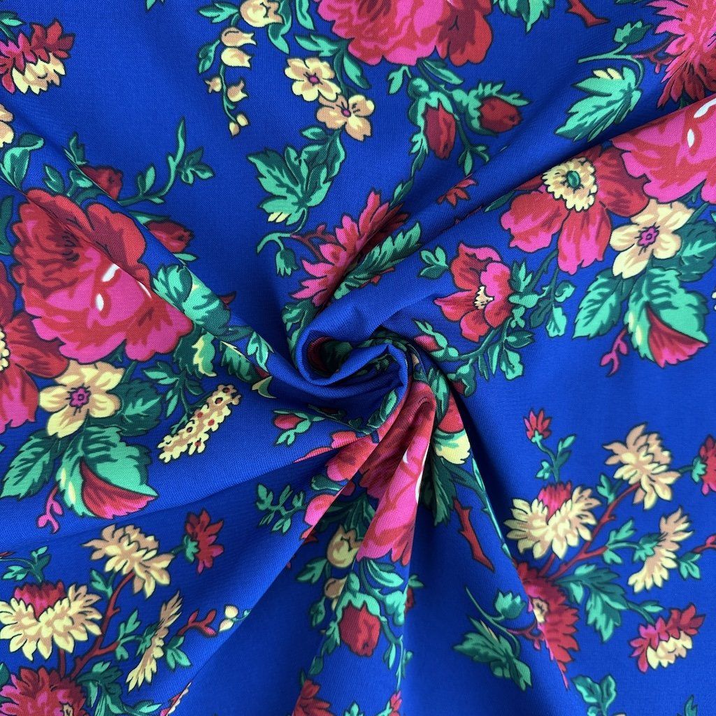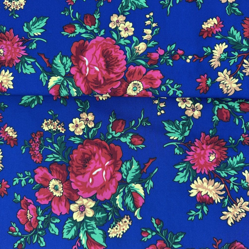 A TIBET népi mintás folklóranyag könnyű, leomló, kellemes tapintású anyag, különböző színváltozatokban kapható. Színes kis virágokkal nyomtatott anyag, amelynek súlya 250 g/m2 és összetétele 100% poliészter, ideális népi ruhák és kiegészítők varrásához.