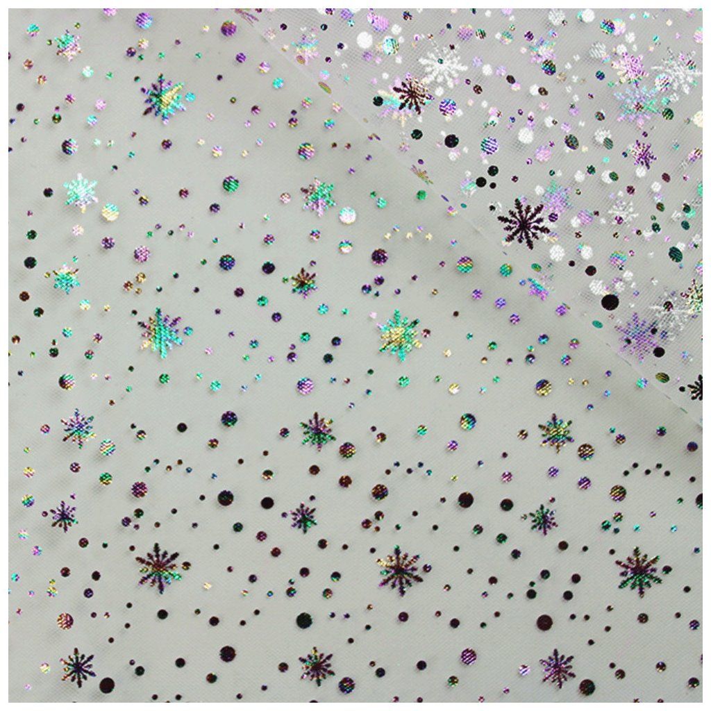 Tüll többszínű, ragyogó applikációkkal, ideális sokféle kreatív alkotáshoz. Partik díszítésére használják, például masnik, szalagok vagy függönyök készítéséhez születésnapokra, esküvőkre és más különleges alkalmakra. Népszerű táncos ruhák, ruhák, szoknyák és kiegészítők, például sálak, stólák, hajdíszek, cipőmasnik, virágok és táskadíszek varrására is.