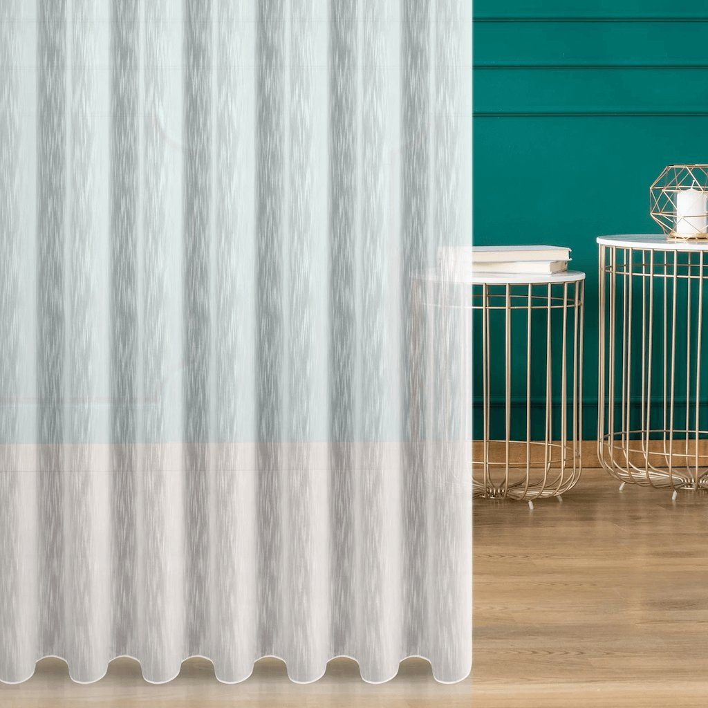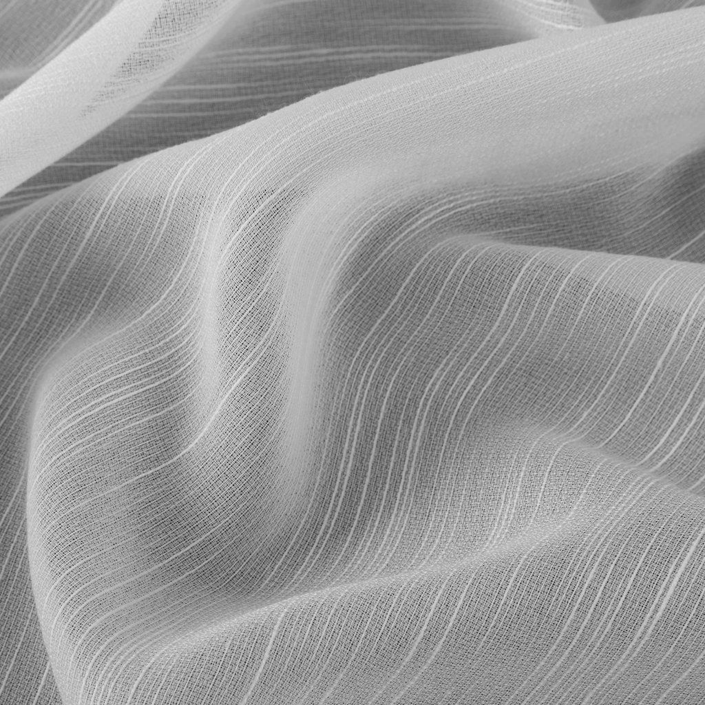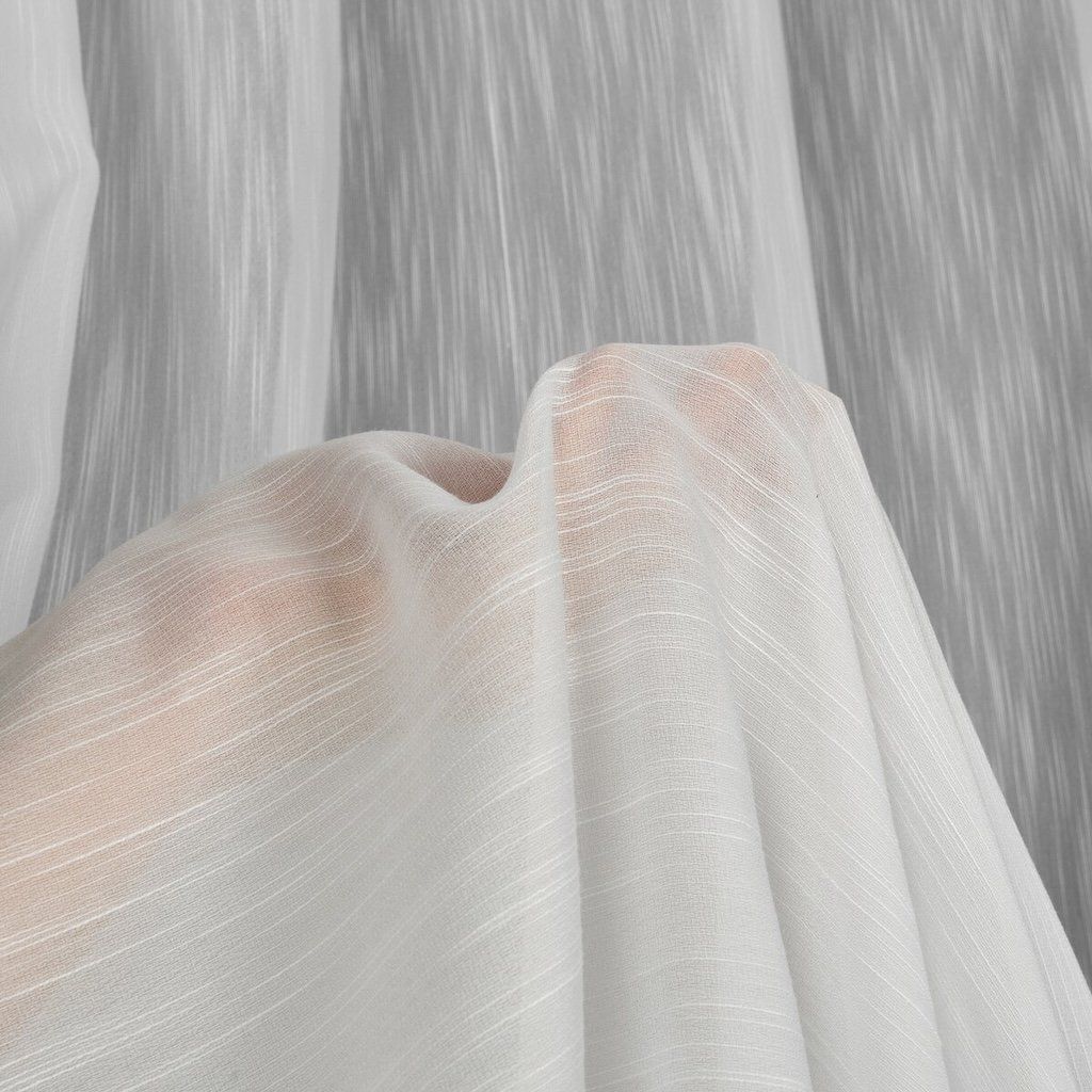 Sima, matt fehér anyag természetes megjelenésével vonzza a tekintetet, és kiváló alapanyagot nyújt különböző kompozíciókhoz. Az esőhatás, amely díszíti, gyönyörűen kiemeli az ablakot. Tökéletesen működik önálló függönyként skandináv, öko, rusztikus vagy modern stílusban. A vitrázsfüggönyök univerzális jellege lehetővé teszi, hogy különböző típusú függönyökhöz illessze, és együtt tökéletesen fognak mutatni. A sűrű szövésű anyag védi az ablakot a túlzott napfénytől, ezért napos helyiségekbe ajánlott. A terhelővarrás az anyag alsó részén biztosítja, hogy a vitrázsfüggönyök a karnisra akasztás után szépen lógjanak.
