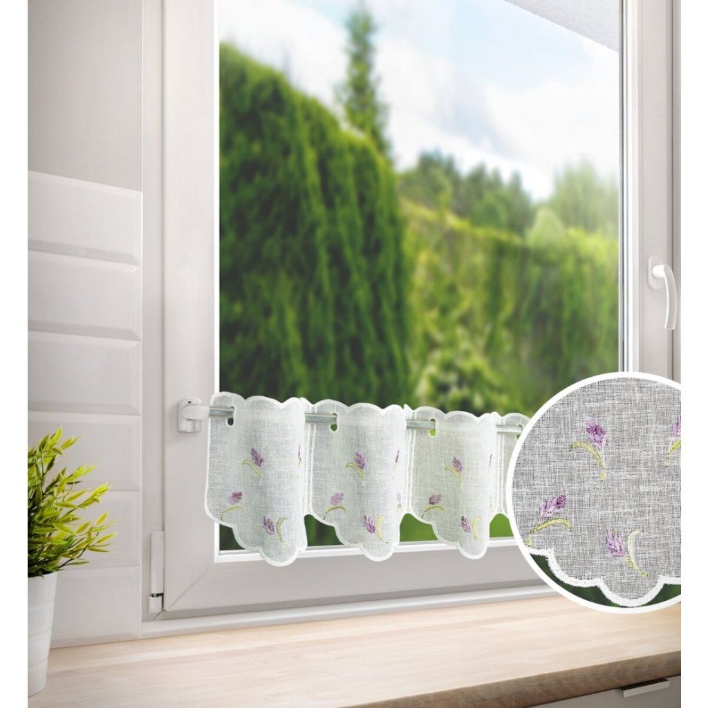 Vitrázsfüggönyanyag Levendula h. 17 cm - Fehér