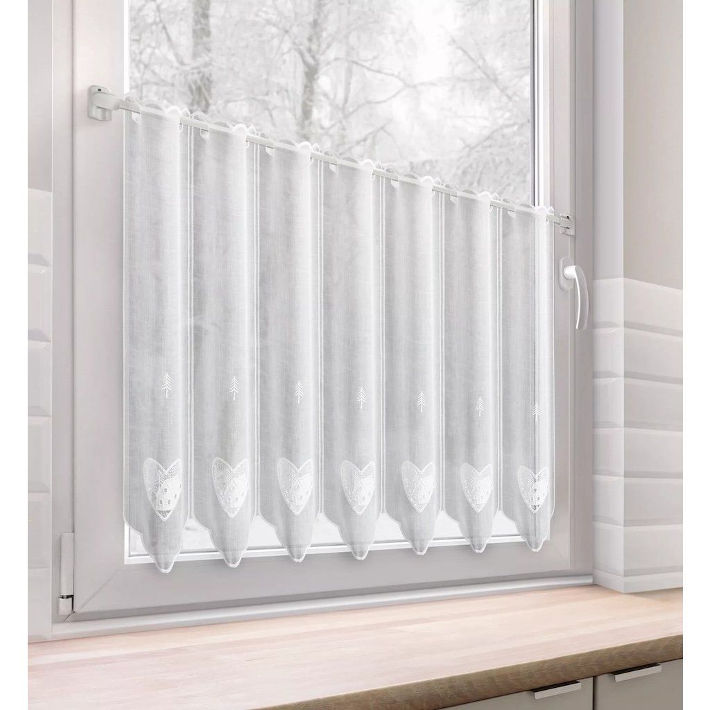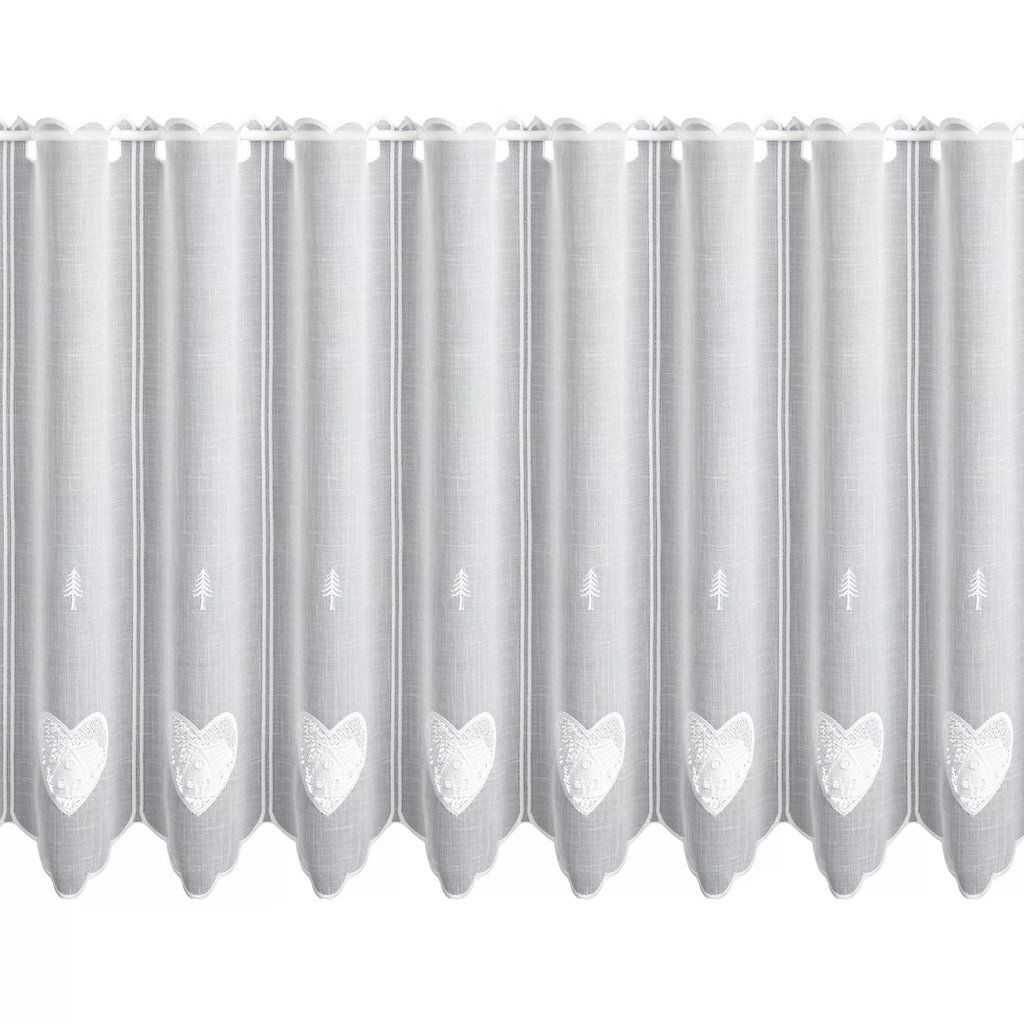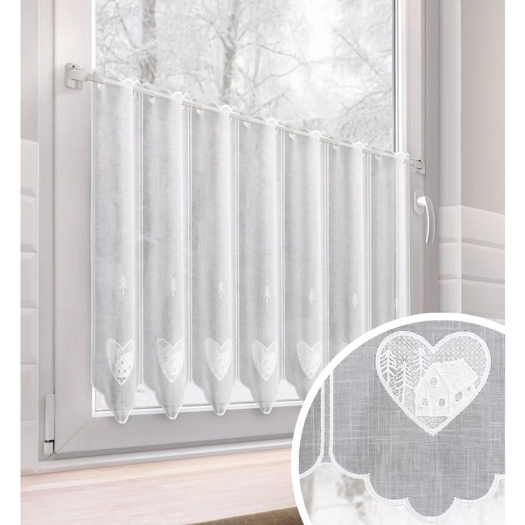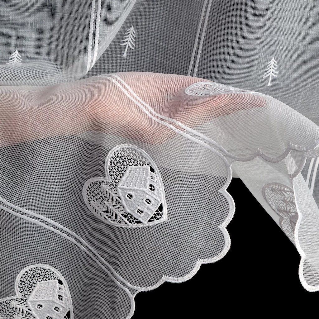 Vitrázsfüggönyanyag Szív h. 60 cm - fehér